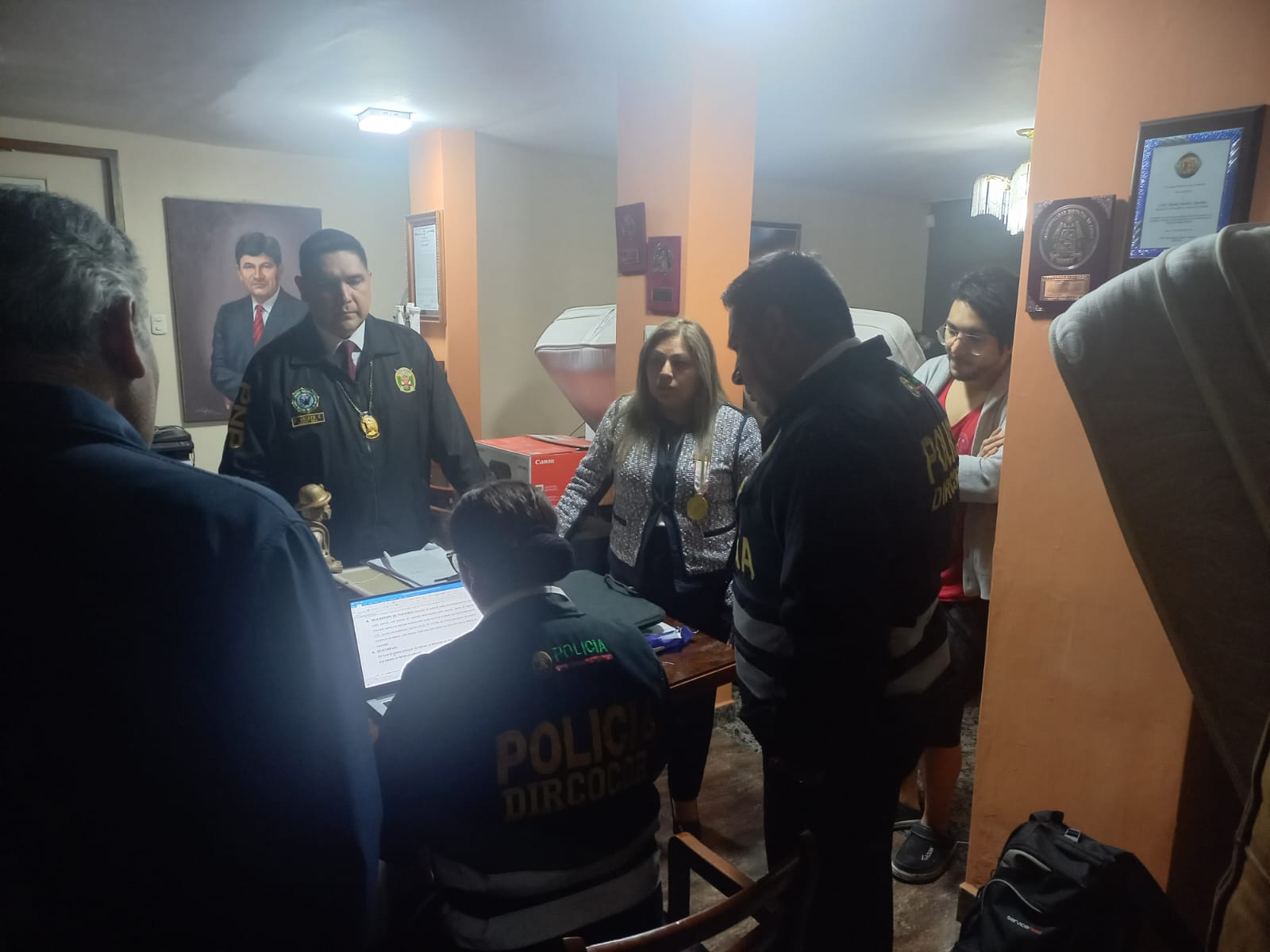 El allanamiento a cargo del Fiscal Provincial Arturo Valencia Paiva se desarrolló con la participación de 3 fiscales, 10 agentes de la Policía Anticorrupción y personal policial de operativos quienes de forma simultánea allanaron la casa del Gobernador Regional y el Exjefe del Área de Logística y Patrimonio Alonso Andia Condo, ubicadas en el distrito de Cerro Colorado y en José Luis Bustamante y Rivero, respectivamente.
