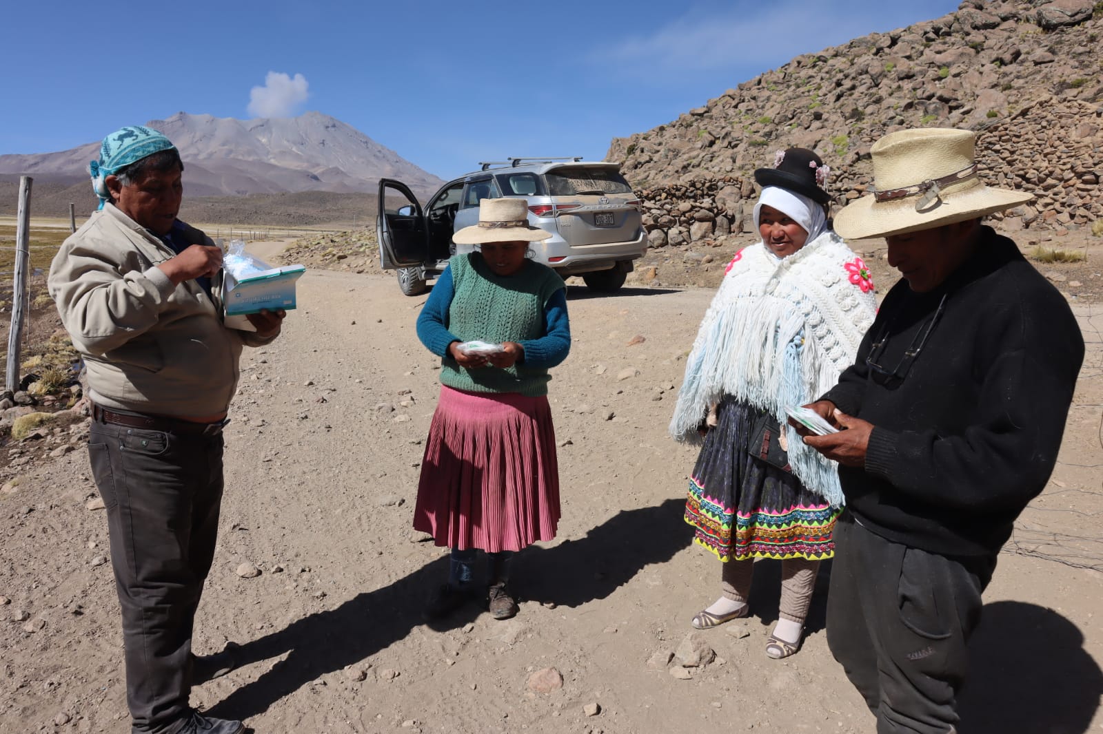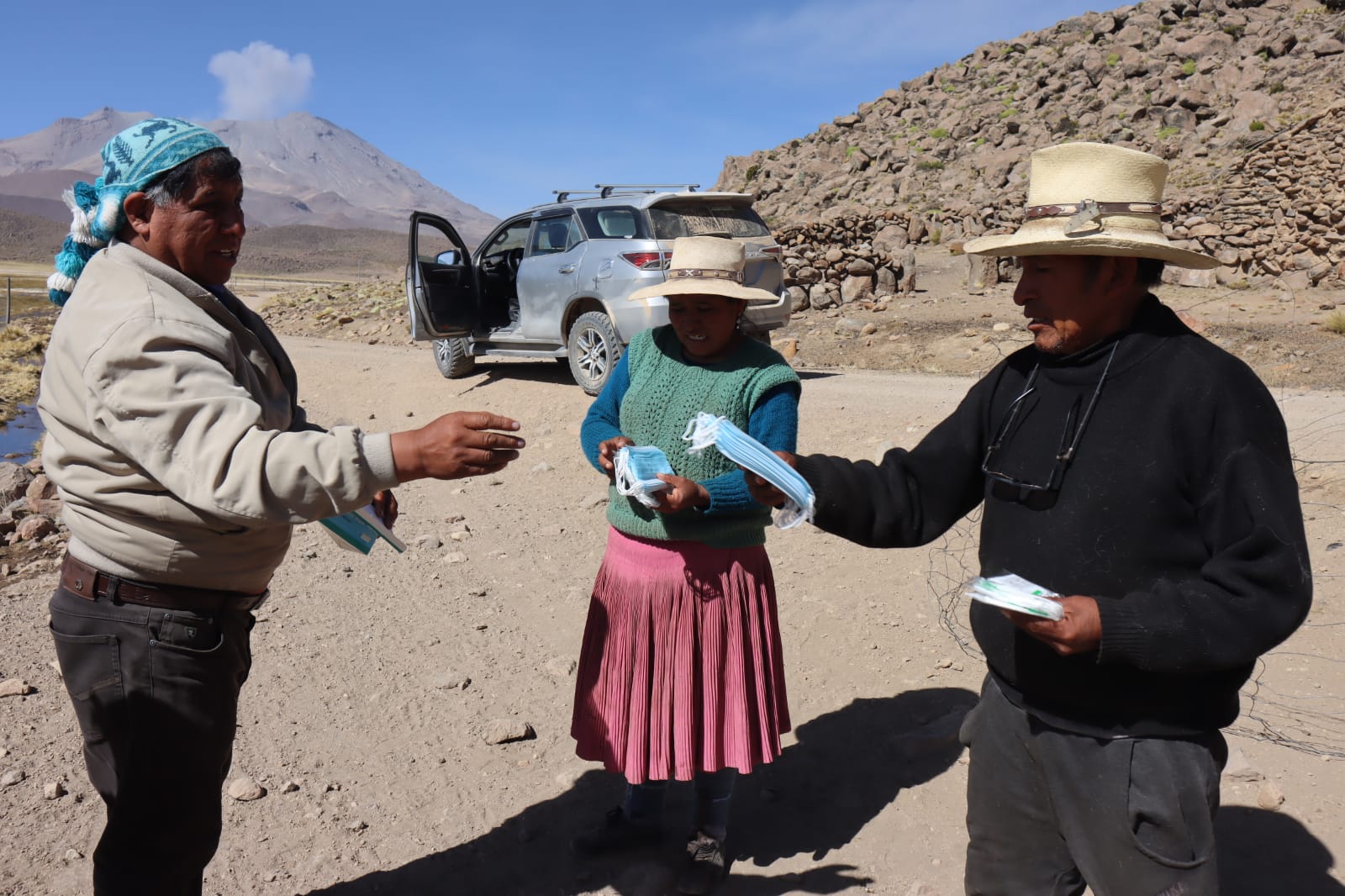 Luego, el edil, se constituyó a los anexos de San Carlos de Titi, Cancosani y Cangalli, próximos al volcán Ubinas, para distribuir los protectores a los lugareños. Dichos poblados están a 25 minutos aproximadamente del macizo, por lo que el riesgo es mayor respecto a la emisión de gases y caída de ceniza volcánica.