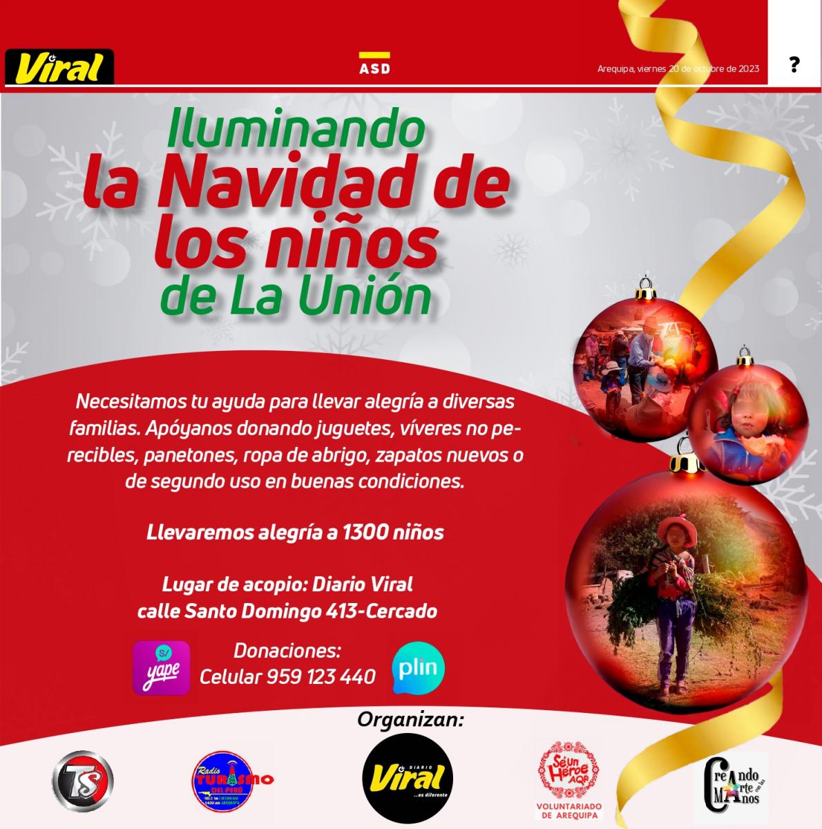 ¡Sobrinos, sobrinas! Nos ponemos en modo navideño ????????? y viviremos la fiesta de la #Navidad llevando alegria a 1300 niños de la provincia de La Unión.