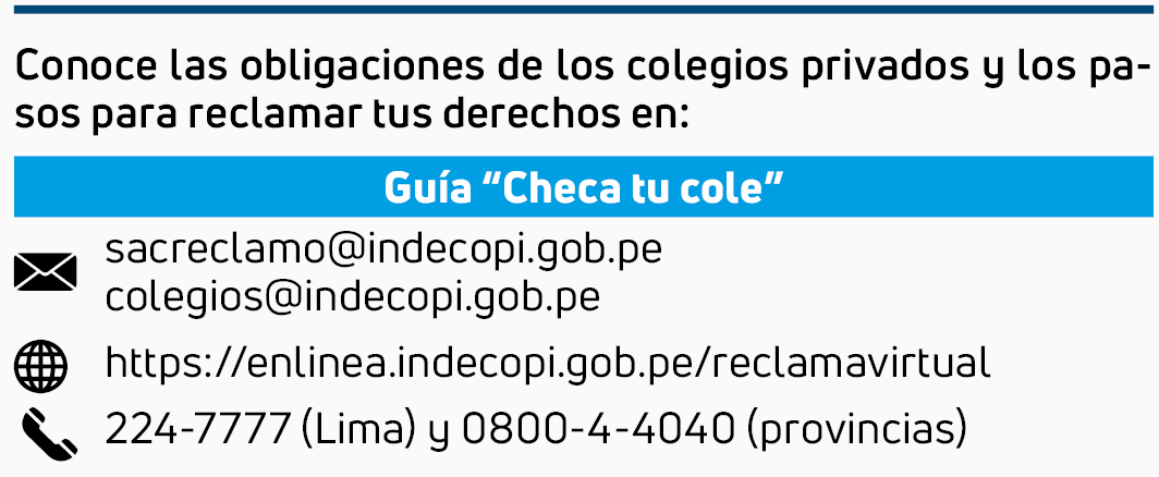En casos como los mencionados, la funcionaria pidió a los progenitores hacer sus reclamos en los canales respectivos de Indecopi.
