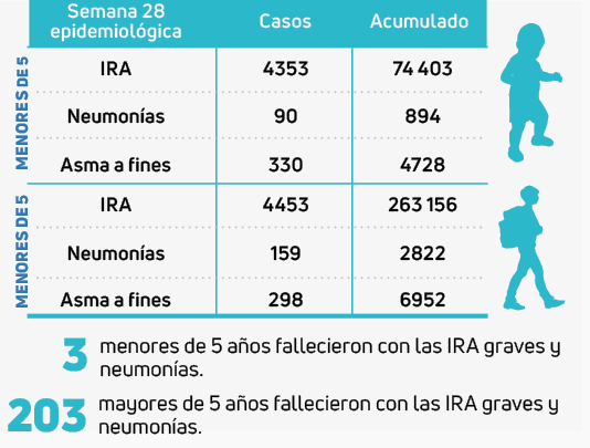 MAYORES. Al igual en mayores de 5 años, el incremento es de 38.9 %, las neumonías en la semana 28 tiene un acumulado desde enero a julio, 263 156.