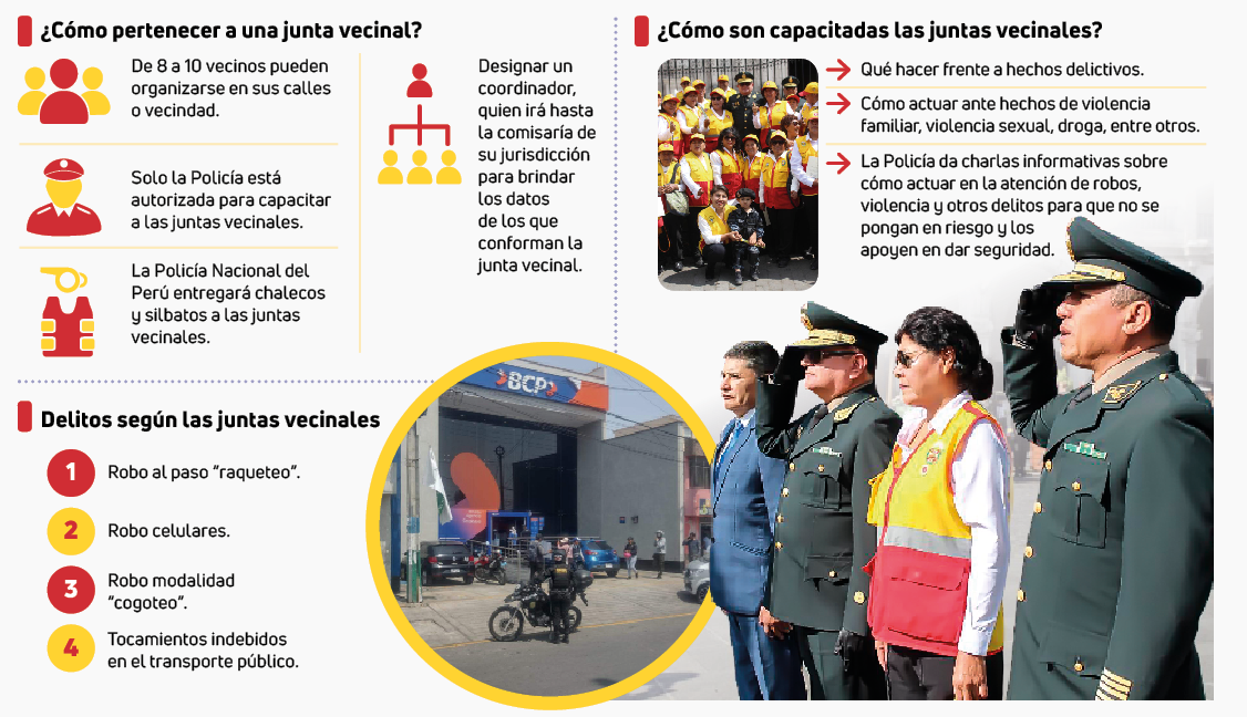 Las juntas vecinales solo pueden ser capacitadas por oficiales de la Policía. (Ver infografía).
