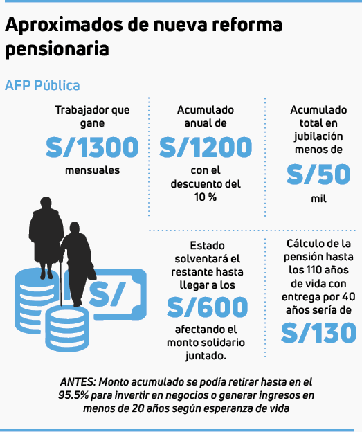 CÁLCULOS. El dirigente explicó que este sistema que estaría en la puerta de ser aprobado por la presidenta del Perú, Dina Boluarte, afecta directamente a la clase trabajadora media baja y genera afán lobista de partidos como Fuerza Popular y Alianza por el Progreso. Se estima que un obrero llegue en el mejor de los casos a un acumulado de S/50 mil recibiendo cerca de S/130 mensuales y alcanzar el mínimo (S/600) con ayuda del Estado. Cuando antes la AFP podía generar retiros de la totalidad (95.5 %) cuando este se jubile.