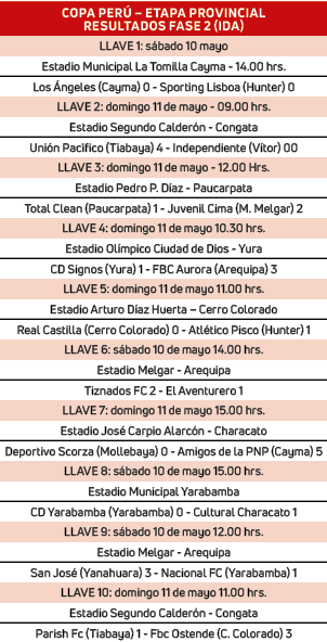 La siguiente fecha se realiza el próximo fin de semana y ahí se conocerán los diez clasificados que, posteriormente, jugarán cinco llaves a partido único donde los ganadores y el mejor perdedor quedarán con vida para la liguilla final de la Copa Perú en Arequipa.