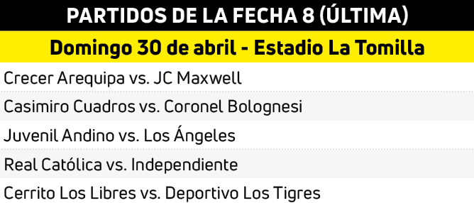 Al término de la penúltima fecha del campeonato de primeras denominado “El Bicentenario” de la Liga Distrital de Fútbol de Cayma, el próximo domingo se conocerá a los equipos campeón y subcampeón, tras los resultados del último domingo.
