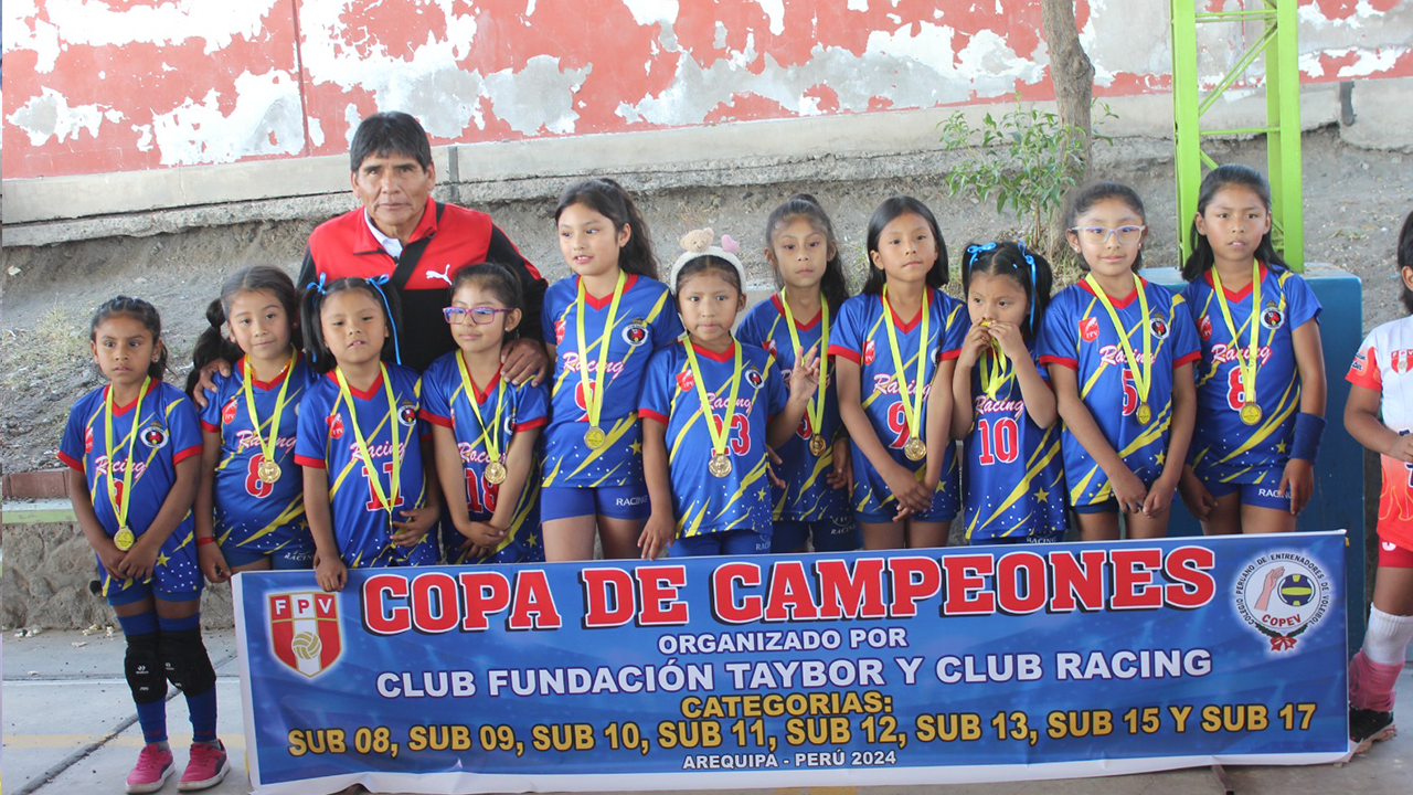 Decenas de niñas y adolescentes deslumbraron en la final de la Copa de Campeones, torneo de vóleibol menores que organizaron este último sábado los clubes Fundación Taybor y Racing en las instalaciones del Politécnico Rafael Loayza, en Mariano Melgar. Los partidos fueron vibrantes y palpitantes de principio a fin. Sólo los tres primeros lugares de las categorías Sub-8, Sub-9, Sub-10, Sub-11, Sub-12, Sub-13, Sub-15 y Sub-17 recibieron sus respectivas medallas.