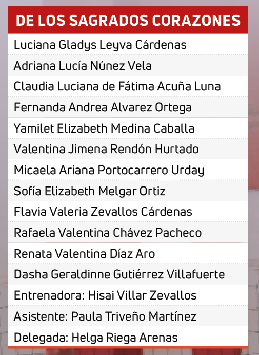 Las matadoras del colegio De los Sagrados Corazones se elevaron a lo más alto y tocaron la gloria en el vóleibol femenino de la categoría menores (13 y 14 años) de los Juegos Deportivos del Consorcio de Colegios Católicos de Arequipa (Codecoa).