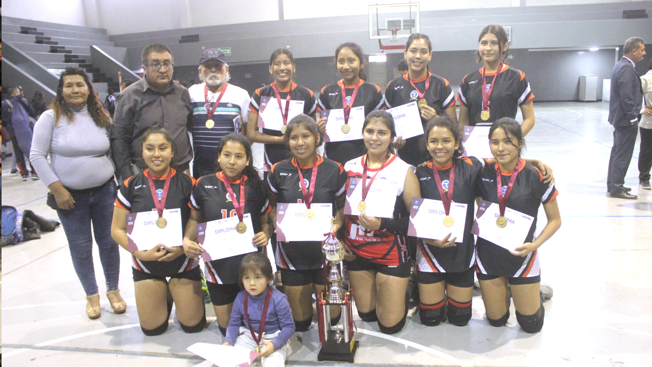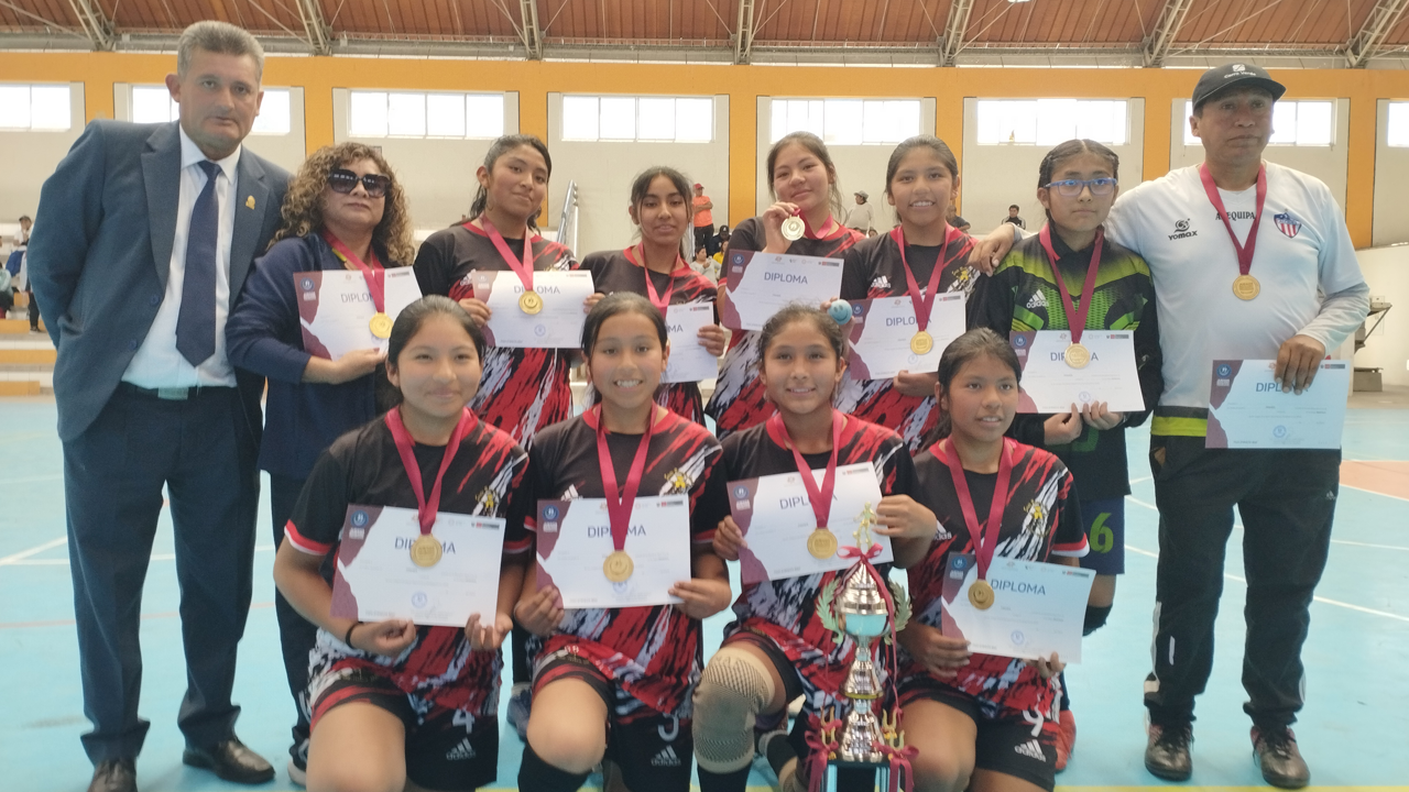 Los colegios Santa Rosa de Lima y Padre Damián, en futsal, mientras que Santa Úrsula y Mayor Mendel, en vóleibol, consiguieron este viernes el título de la etapa regional de los Juegos Escolares y avanzaron a la fase macrorregional de Tacna. En el futsal damas de la categoría “B” (13 y 14 años) la I.E. Santa Rosa de Lima (UGEL Sur) cogió oro al vencer en la final 3-1 a Micaela Bastidas (UGEL Norte), y en varones lo hizo el colegio Padre Damián (UGEL Norte), que apabulló 7-0 a San Pedro de Yauca (Caravelí).