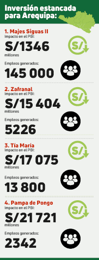 De estos, tres son referidos a la minería (Zafranal, Tía María y Pampa de Pongo) y uno es sobre la agroexportación y ampliación de la frontera agrícola conMajes Siguas II.