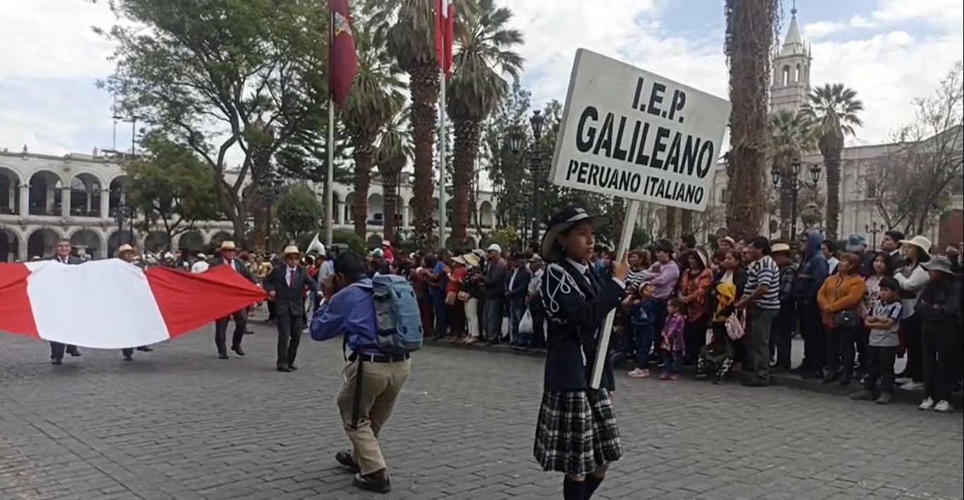Es por ello que este domingo 1 de octubre del 2023, docentes, alumnos, personal administrativo, miembros de instituciones públicas y privadas, así como de periodistas de Arequipa desfilaron por el estrado oficialubicado frente a Portal de la Municipalidad Provincial de Arequipa en la plaza de Armas de la Ciudad Blanca, luego de haber realizado el izamiento del máximo símbolo patria: la bandera del Perú.