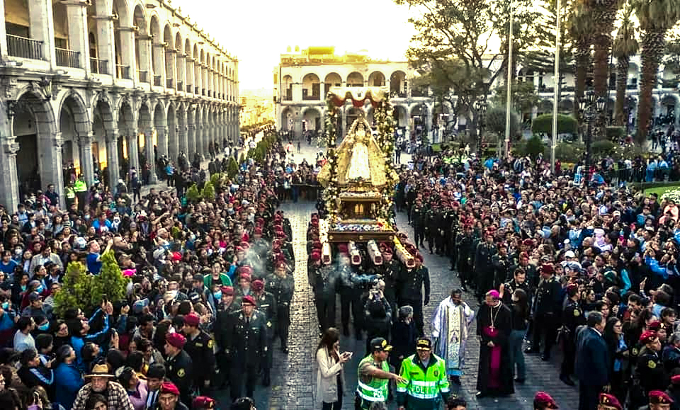El miércoles 31 de mayo, la Virgen de Chapi cerró su mes jubilar con su visita a la Ciudad Blanca. La advocación mariana más importante de Arequipa llegó hasta la plaza de Armas donde miles de feligreses la esperaron para recibir sus bendiciones y agradecer los milagros concedidos. Su llegada se dio por ser la fiesta de la Visitación de la Bienaventurada Virgen María y clausura del mes mariano, la misa fue presidida por el nuncio apostólico en el Perú, Paolo Rocco Gualtieri.