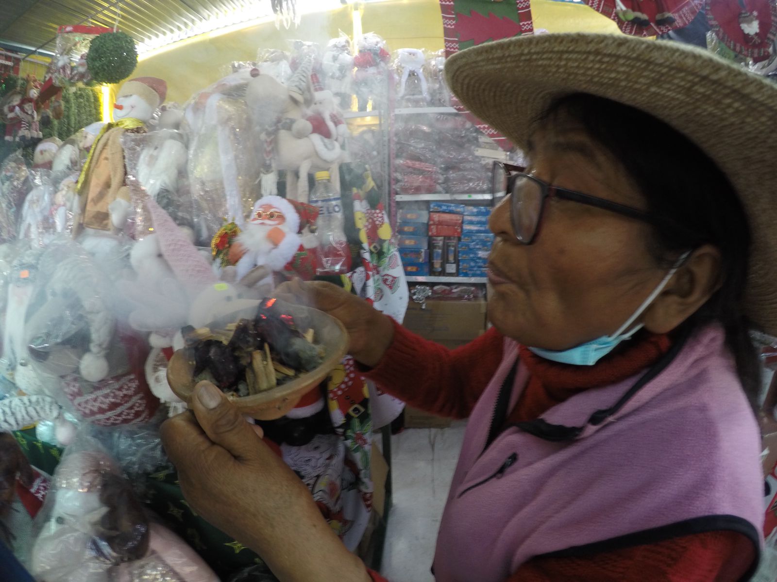 Los comerciantes usan el sahumerio para atraer la buena suerte, es el sello de las ferias.