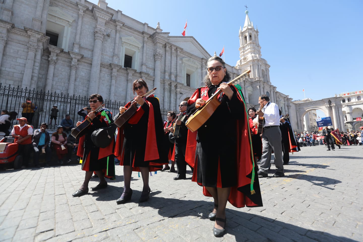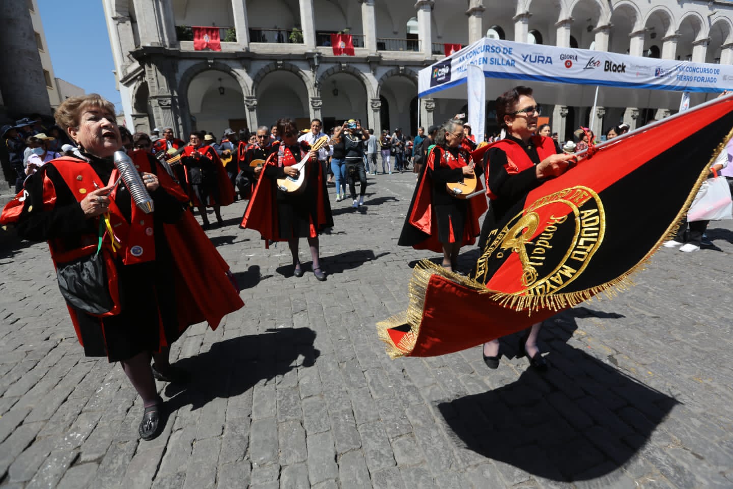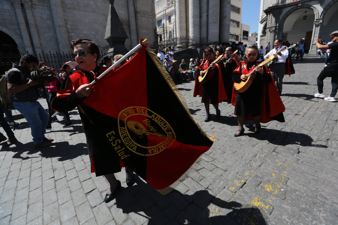 A ritmo de pampeñas y yaravíes, los integrantes de la “Rondalla de oro” del Centro de Adulto Mayor (CAM) Zamácola de la Red de Essalud Arequipa, abrió el pasacalle tunante, mediante el cual artistas de cinco países saludaron a Arequipa por su 483.° aniversario de fundación española.