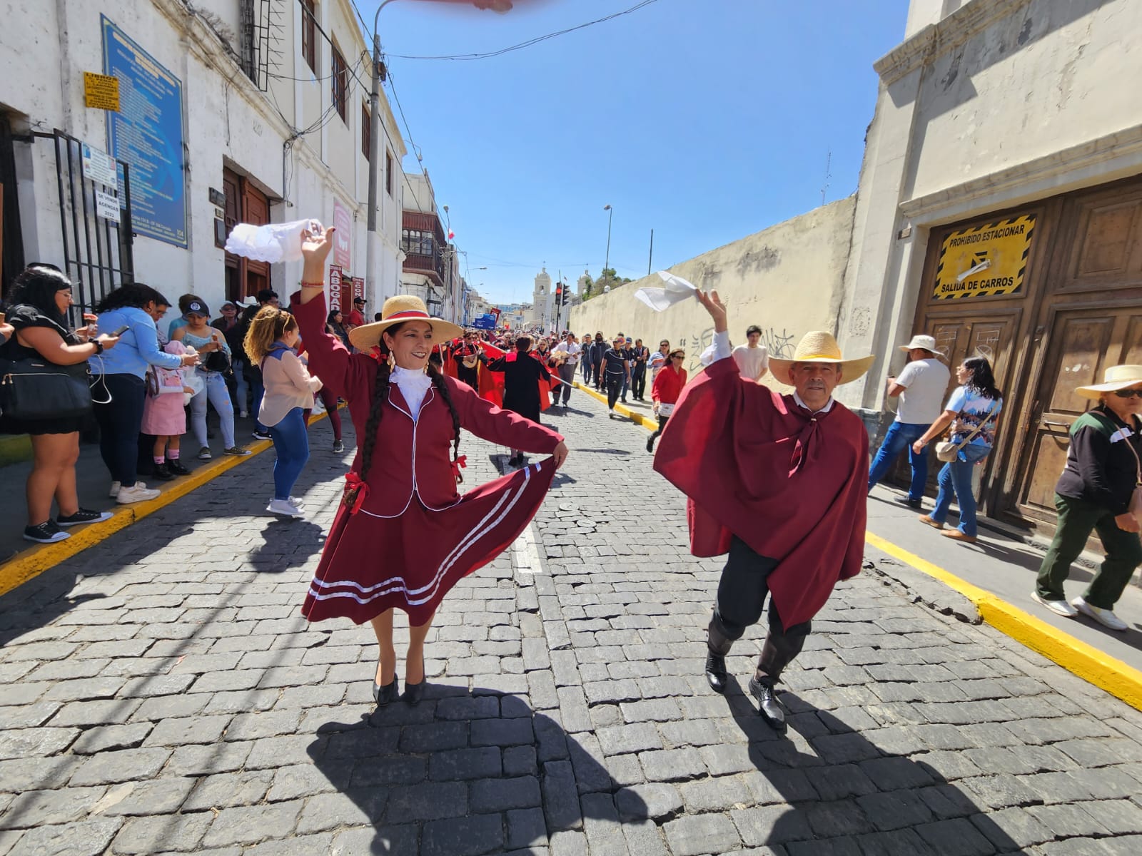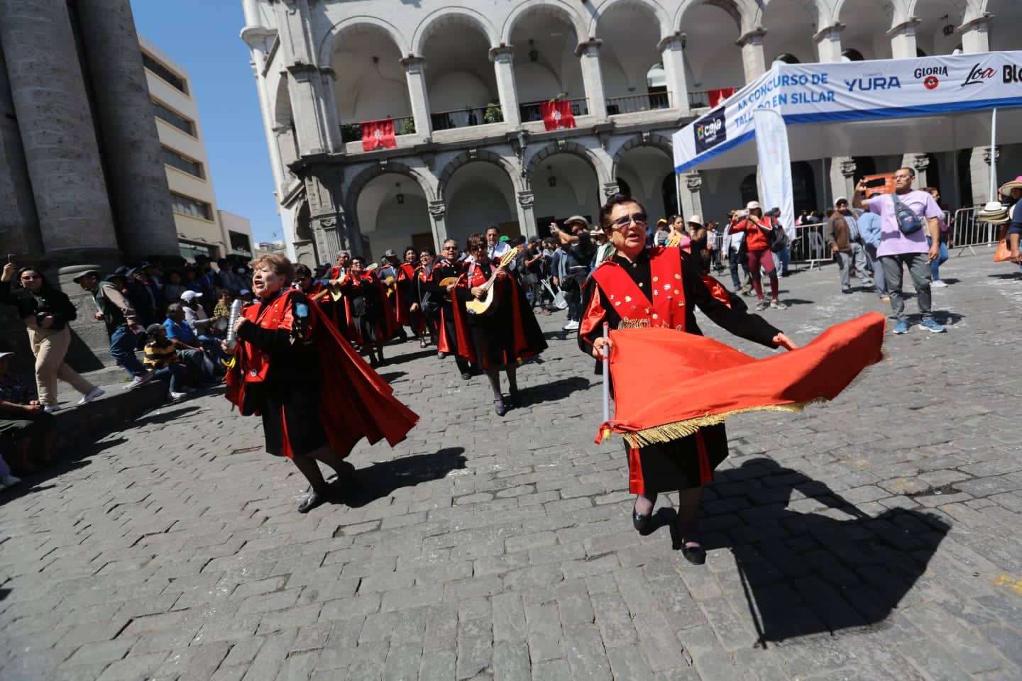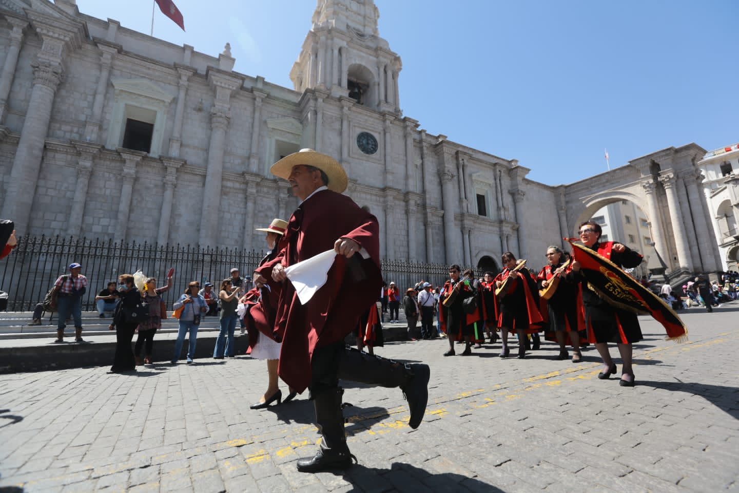 A ritmo de pampeñas y yaravíes, los integrantes de la “Rondalla de oro” del Centro de Adulto Mayor (CAM) Zamácola de la Red de Essalud Arequipa, abrió el pasacalle tunante, mediante el cual artistas de cinco países saludaron a Arequipa por su 483.° aniversario de fundación española.