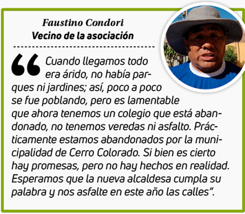 El presidente de la asociación, Hidalgo Machaca, informó que está a la cabeza de la nueva junta directiva que hace poco más de dos meses asumieron el cargo, pero tienen claras las tareas que deben cumplir teniendo como prioridad el asfaltado de sus calles.