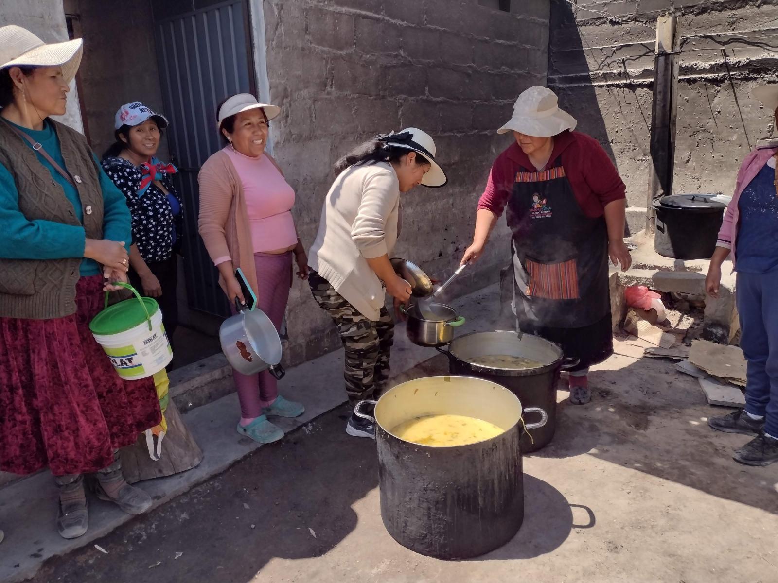 “La Cuarentena” congrega a 45 socias de esta localidad que brindan ayuda a las personas en situación vulnerable como adultos mayores, niños, estudiantes, madres solteras, entre otros. Diariamente cocinan entre 215 a 218 raciones que entregan gratuitamente. “Nosotros no cobramos ni un céntimo por el almuerzo diario. Solo recibimos el aporte voluntario de S/ 5 soles al mes que se usa para comprar leña y S/1.50 para comprar un saquito de sal”, detalló.