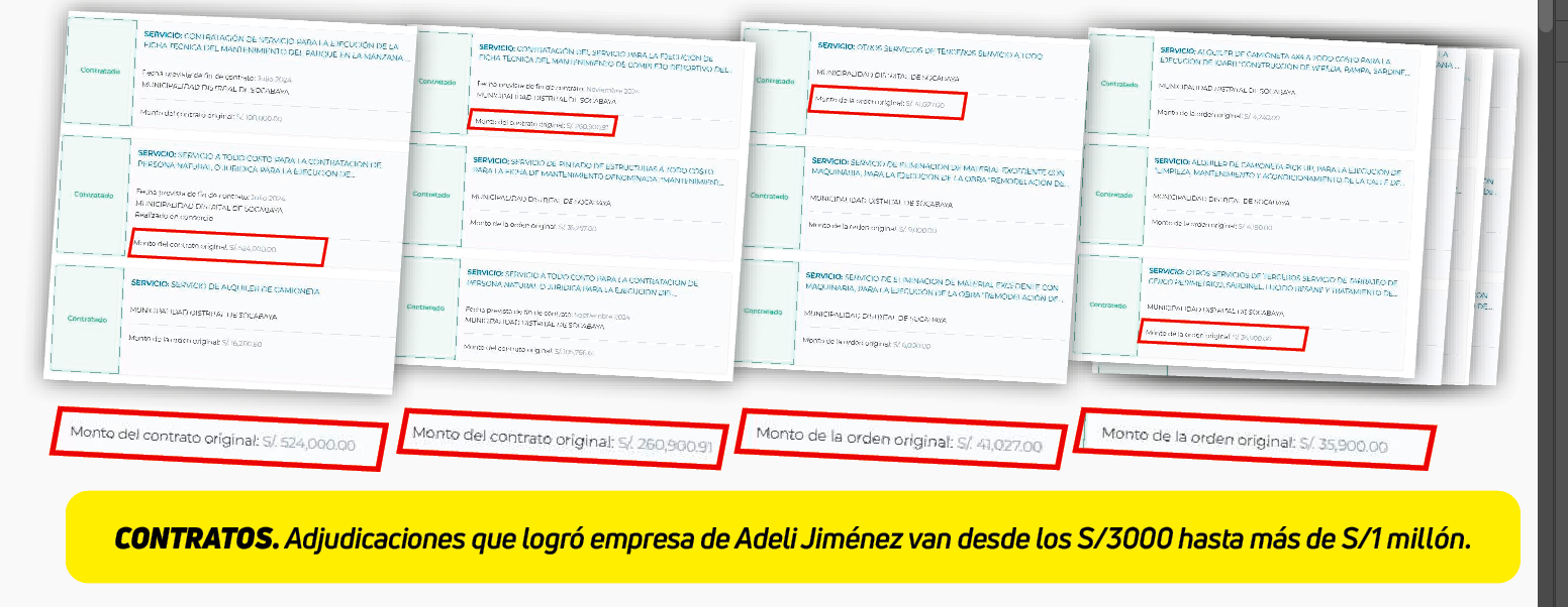 Adeli Zeferina Jiménez Oviedo, es la representante legal de Financiera Im Constructora EIRL, empresa que empezó a operar desde febrero de 2023, pese a su poca experiencia, se convirtió en una de las proveedoras “favoritas” de la Municipalidad Distrital de Socabaya donde ganó 33 licitaciones entre contratos menores directos y asociados por consorcio.