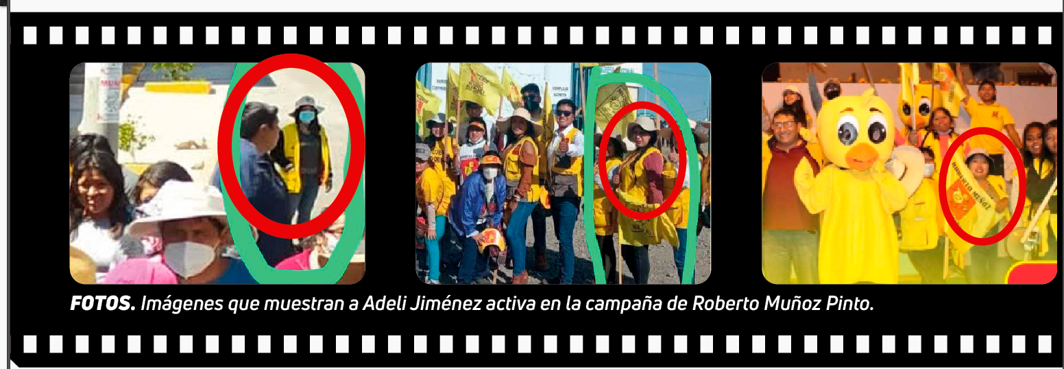 Pero, sí se trataría de una conocida en el entorno de la autoridad edil y su padre Marcelino Muñoz, ya que Jiménez Oviedo reconoció haber sido una “colaboradora externa” de Pila Construcciones, empresa del teniente alcalde de Socabaya y progenitor de Roberto Muñoz, en dicha entidad se encargó de buscar personal en diciembre de 2022.