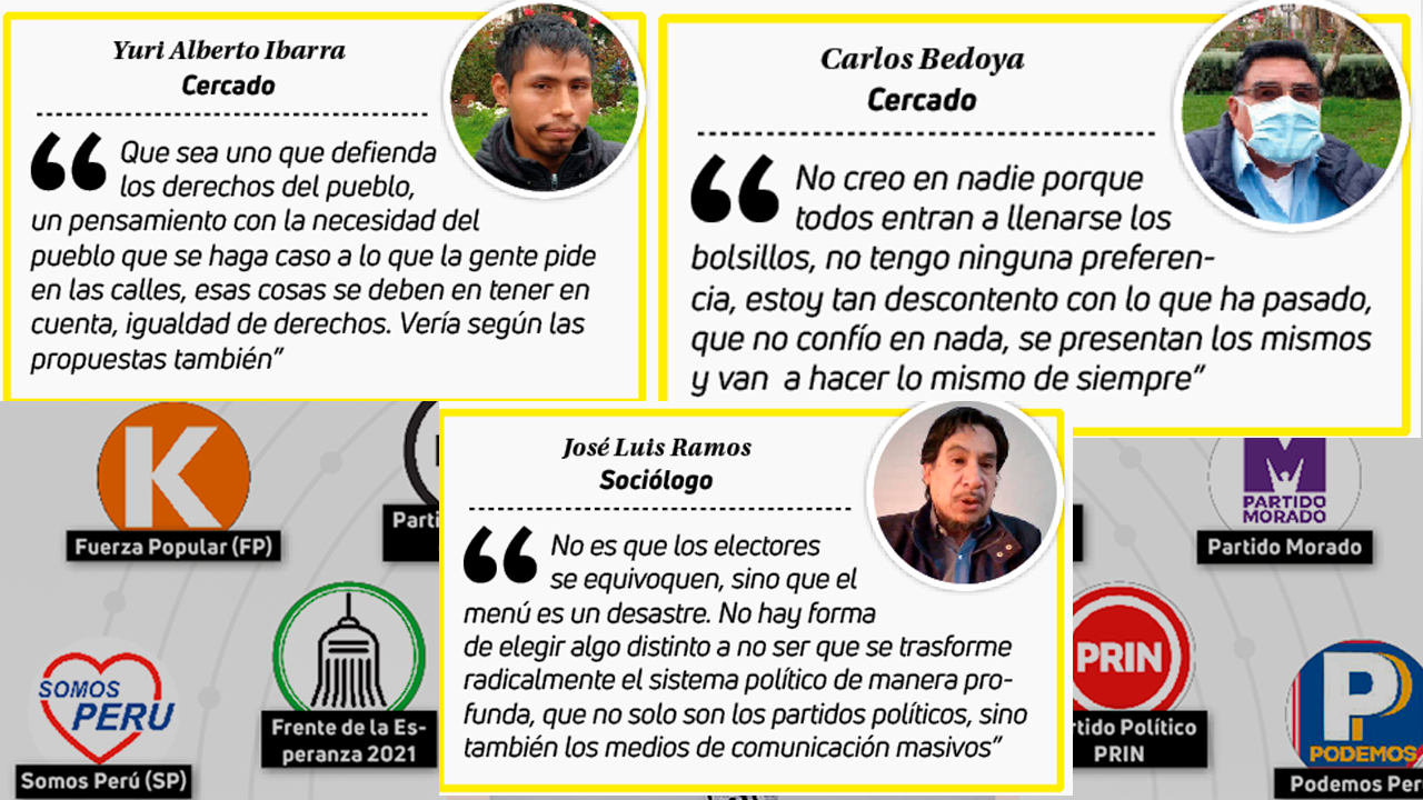 Entre los principales partidos que figuran dentro de la lista de los inscritos se encuentran Acción Popular, Alianza para el Progreso, Avanza País, Fuerza Popular y Juntos por el Perú.