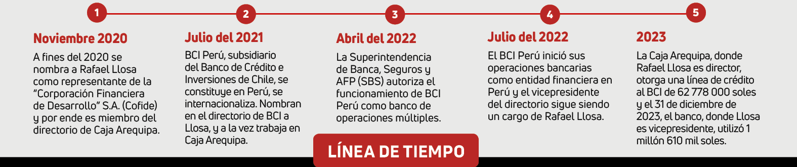 Si bien no es un delito que trabaja en ambas entidades, lo que sí sería irregular es que en el 2023, la Caja Arequipa dispuso una línea de crédito de más de S/62 millones a la entidad chilena con interés del 6 % y de dicho monto utilizó más de S/1 millón, según documentos obtenidos por Diario Viral y que se observan en la SBS (ver línea de tiempo).