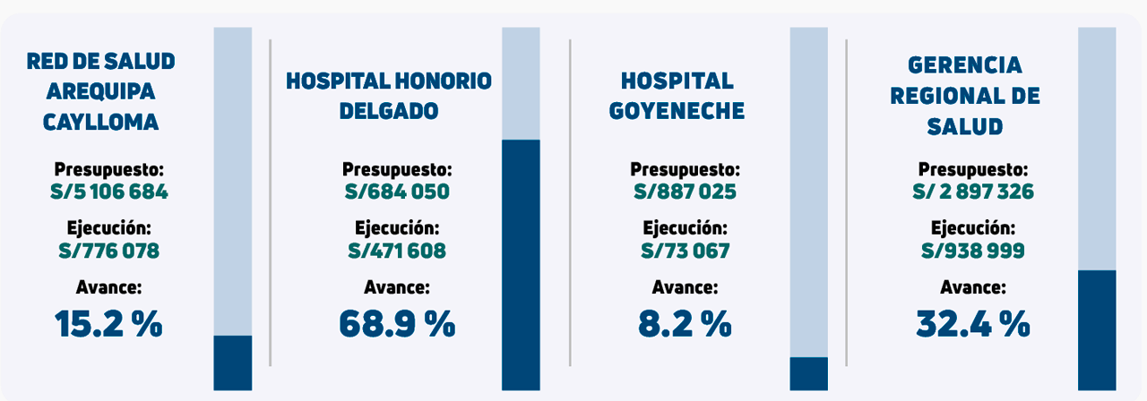 En el caso de la Gerencia Regional de Salud de Arequipa (Geresa) solo presentan un avance del 32.4 % que representa la ejecución de S/939 mil, pese a recibir S/2.8 millones del MEF.