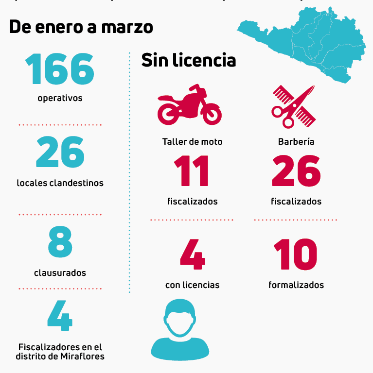 También los negocios de barberías en la avenida Salaverry y La Alameda no tienen permisos para abrir los puestos, por lo que fueron clausurados. De 11 talleres de motos solo quedaron cuatro que tramitaron licencia y de 23 barberías quedaron 10.