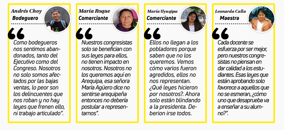 Diversas encuestas evidencian la alta desaprobación del Congreso y ello se plasma en el rechazo de la población cuando los ‘padres de la patria’ llegan en su semana de representación; de ello no se salvan los parlamentarios por Arequipa.