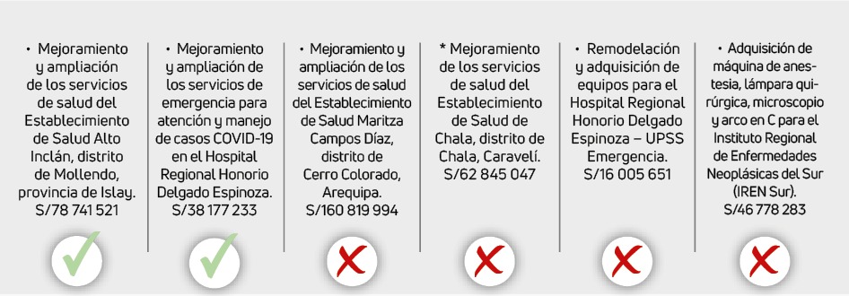 En la actualidad existen dudas si le alcanzará el tiempo para acabar los hospitales de Chala y Cotahuasi, los cuales a la fecha no tienen ni el expediente técnico de saldo de obra. La ampliación del área de emergencia del Honorio Delgado Espinoza solo fue una promesa utópica al igual que la creación de un “Instituto de salud mental en Arequipa”.