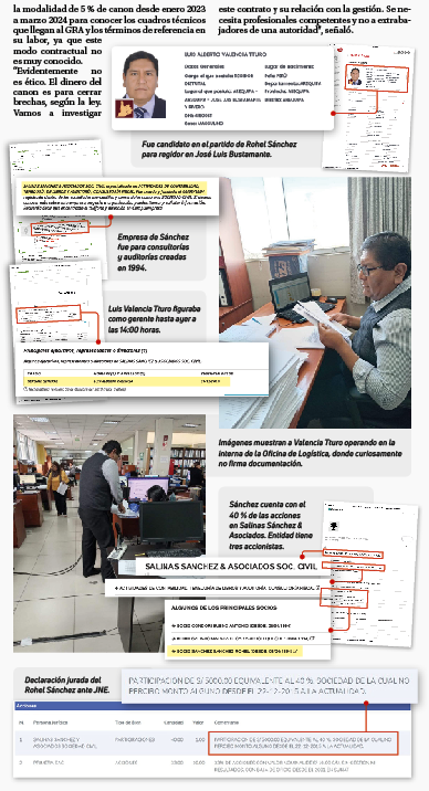 INVESTIGACIÓN. El hecho fue cuestionado por el presidente del Consejo Regional de Arequipa (CRA), Fernando Cornejo, quien calificó de lamentable esta relación y vínculo de favores. Sostuvo que pedirá información a fin de corroborar si continúa como gerente en Salinas Sánchez & Asociados, de ser el caso, podría configurarse una causal de delito.