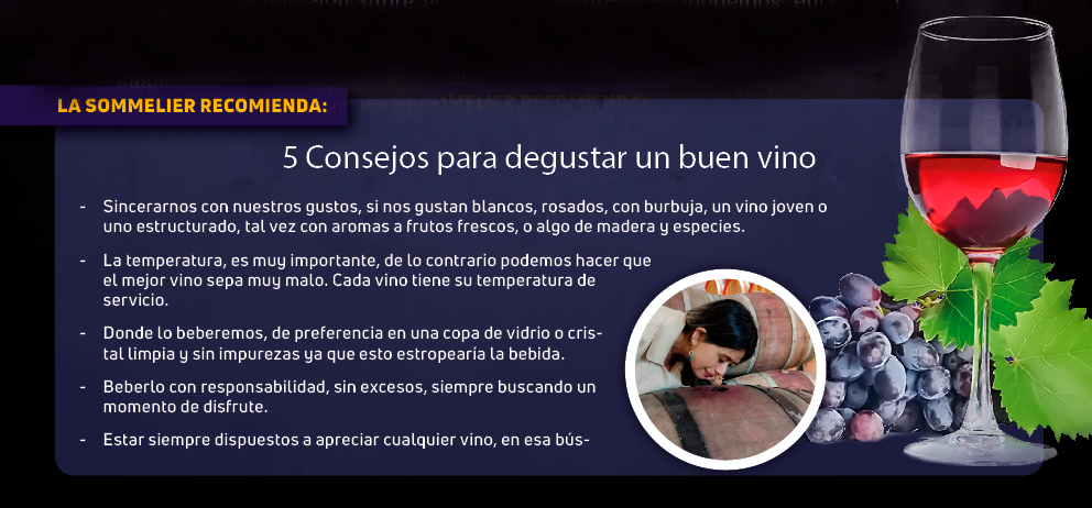 ¿Cuáles son las habilidades para ser un buen sommelier y dónde se puede estudiar el interesado? Estoy convencida que se debe tener dos cosas: espíritu de servicio y sensibilidad. Los conocimientos los podemos adquirir con mucha dedicación y estudio, mas el norte de nuestra profesión es siempre el servicio, el generar experiencias al cliente, entender sus gustos, y a la vez generar esa cercanía entre el productor y le consumidor. Los vinos y otras bebidas como el Sake, la sidra, la cerveza, etc. son más que un líquido que acompaña y armoniza con un plato, es un lugar, una historia, trabajo, sueños y anhelos de personas.