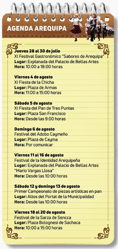 La Comisión de Festejos de la Municipalidad Provincial de Arequipa informó que la entrada para el XI Festival Sabores de Arequipa es de S/5. Uno de los eventos más esperados es la XI Fiesta de la Chicha y hay dos novedosos dedicados al panca y a la sarza de sencca.