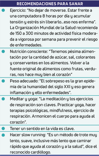 La hipertensión, los infartos, el síndrome cardio-metabólico, entre otras, son algunas de las enfermedades cardiovasculares relacionadas a estados emocionales negativos. El especialista recomendó hacer ejercicio de morado a vigoroso. (Ver cuadro)