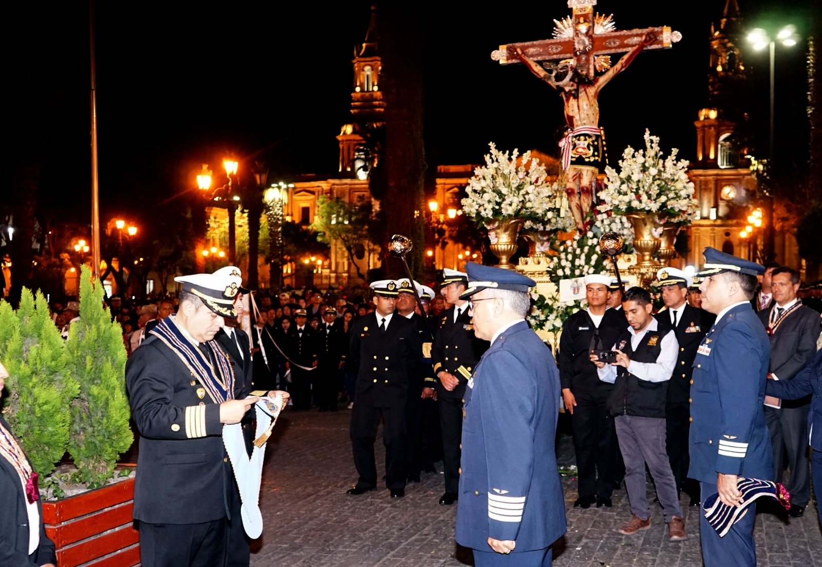 En ceremonia llevada a cabo por Semana Santa, en homenaje al Cristo de la Caridad, Patrono Jurado de Arequipa y de las Fuerzas Armadas y Policía, el Ala Aérea N.°3 en acto solemne recibió la Mayordomia 2024-2025 del Cristo de la Caridad.
