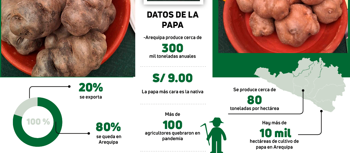 Sostuvo que Arequipa tiene más de 10 mil hectáreas agrícolas con 25 mil agricultores dedicados a la siembra y cosecha del citado insumo de pan llevar. En producción anual se superan las 300 mil toneladas, de estas el 80 % abastece los mercados locales y el 20 % se exporta al mercado central de Lima y diferentes localidades de Bolivia y Brasil.