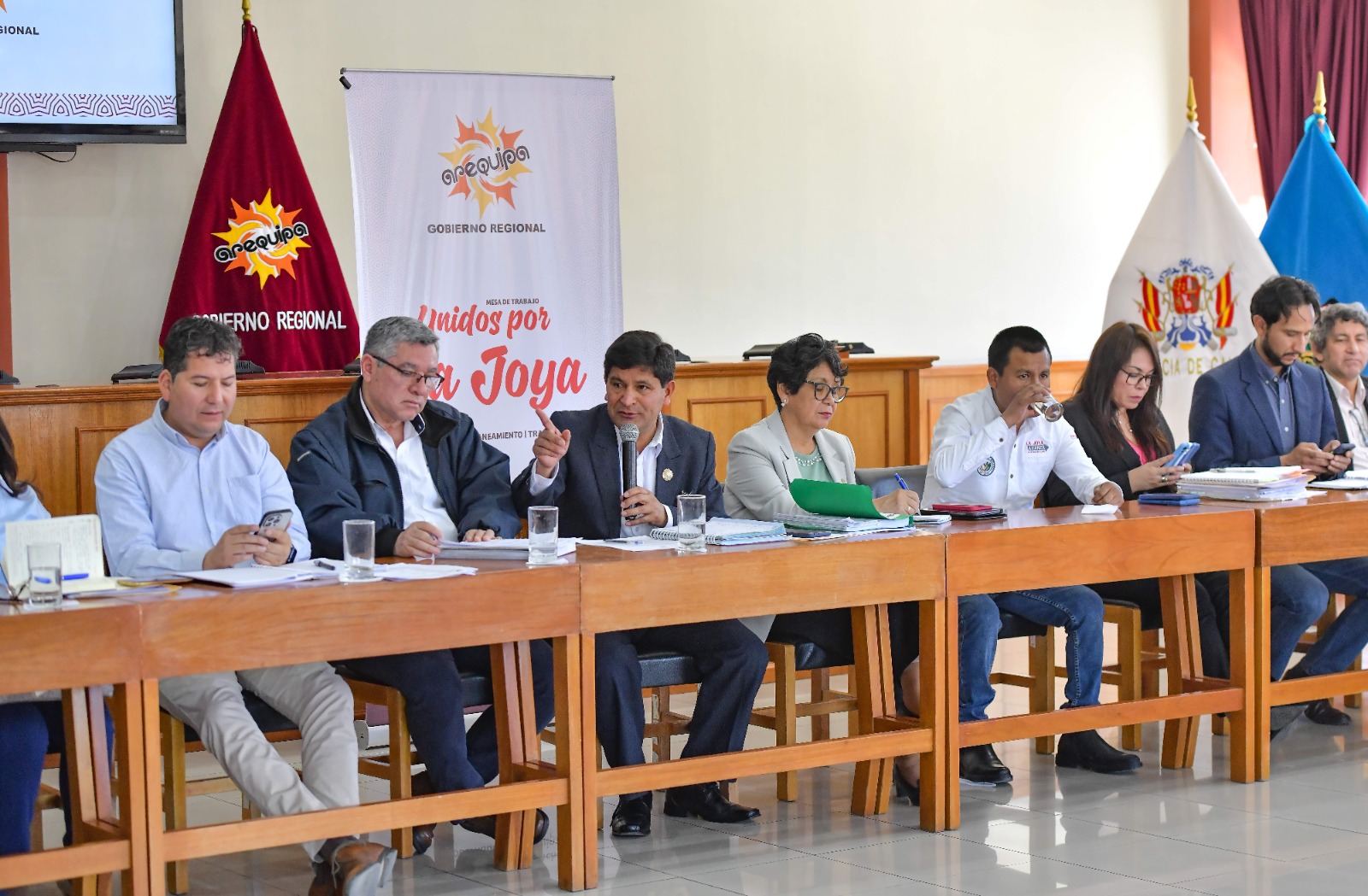 En esta primera cita de trabajo estuvieron presentes, la vicegobernadora Ana María Gutiérrez, el gerente general, Leonidas Zavala; los gerentes de Salud, Walter Oporto; Educación, Cecilia Jarita; de Agricultura, José Paredes; de Infraestructura, Alfredo Zirena; el jefe de la Oficina de Diálogo y Gobernabilidad, Alonso Ortiz; la jefa de la Oficina de Ordenamiento Territorial, Elizabeth Sarmiento, entre otros.