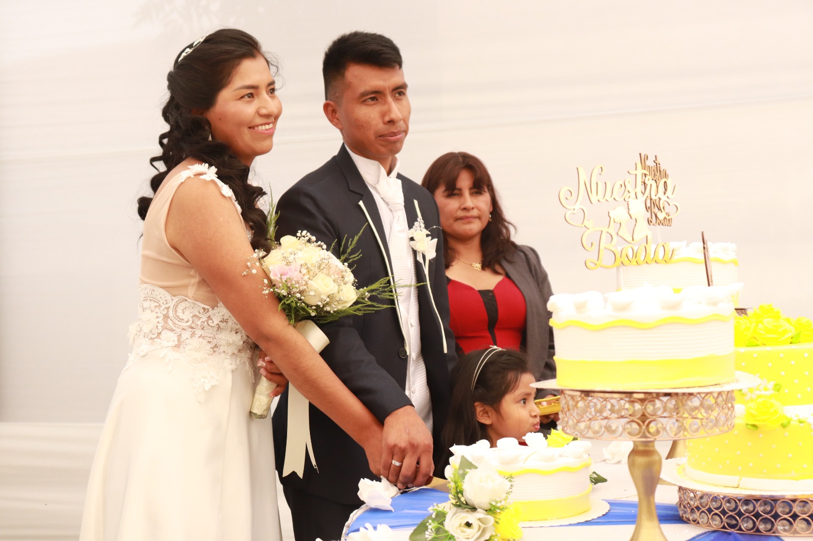 La pareja más joven compuesta por Ronald David Tapia Ccoto (25) y Sarahí Rosario Huamaní Yancapallo (25) también cortaron el pastel de matrimonio.