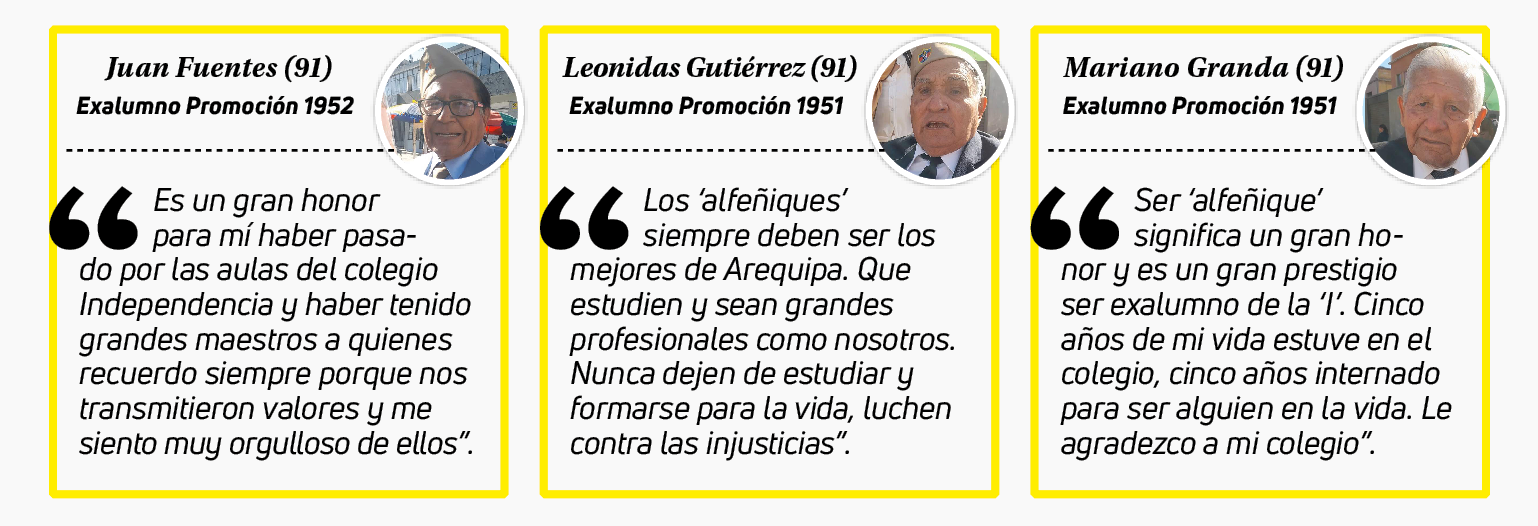 Granda, Gutiérrez y Fuentes se reencontraron en el homenaje por el 196.º aniversario de la institución y desfilaron por la av. Independencia. Mantienen vivo el recuerdo por su colegio y lo que significó también reclamar por sus derechos.
