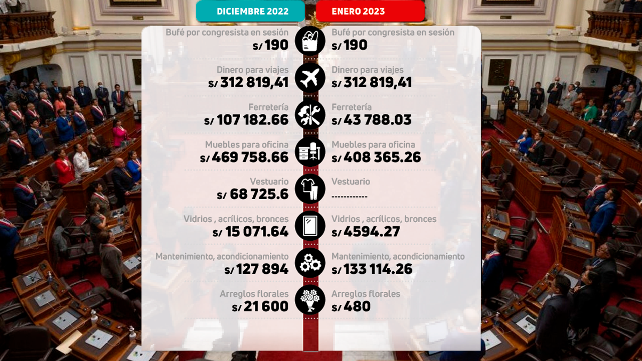 Lima. Austeridad no es una palabra que exista en el Congreso de la República, eso fue demostrado por los escándalos del bufé, pagos en viajes y alfombras. Sin embargo, hay más gastos inexplicables que superan el millón de soles en plena convulsión social (diciembre y enero).