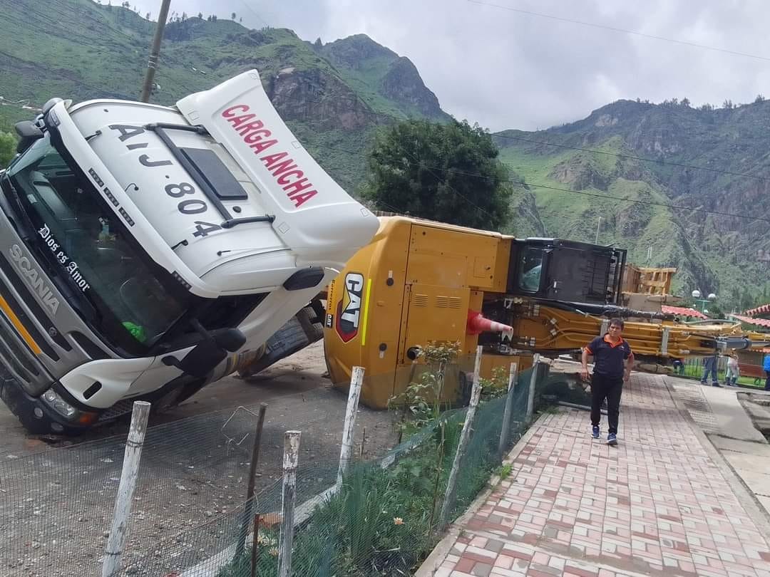 Tras los trabajos de limpieza en la carretera al ingreso del distrito de Tomepampa, una retroexcavadora se volcó en la vereda. Esta maquinaria fue donada por la entidad regional a la Municipalidad Provincial de La Unión y aún no fue levantada.