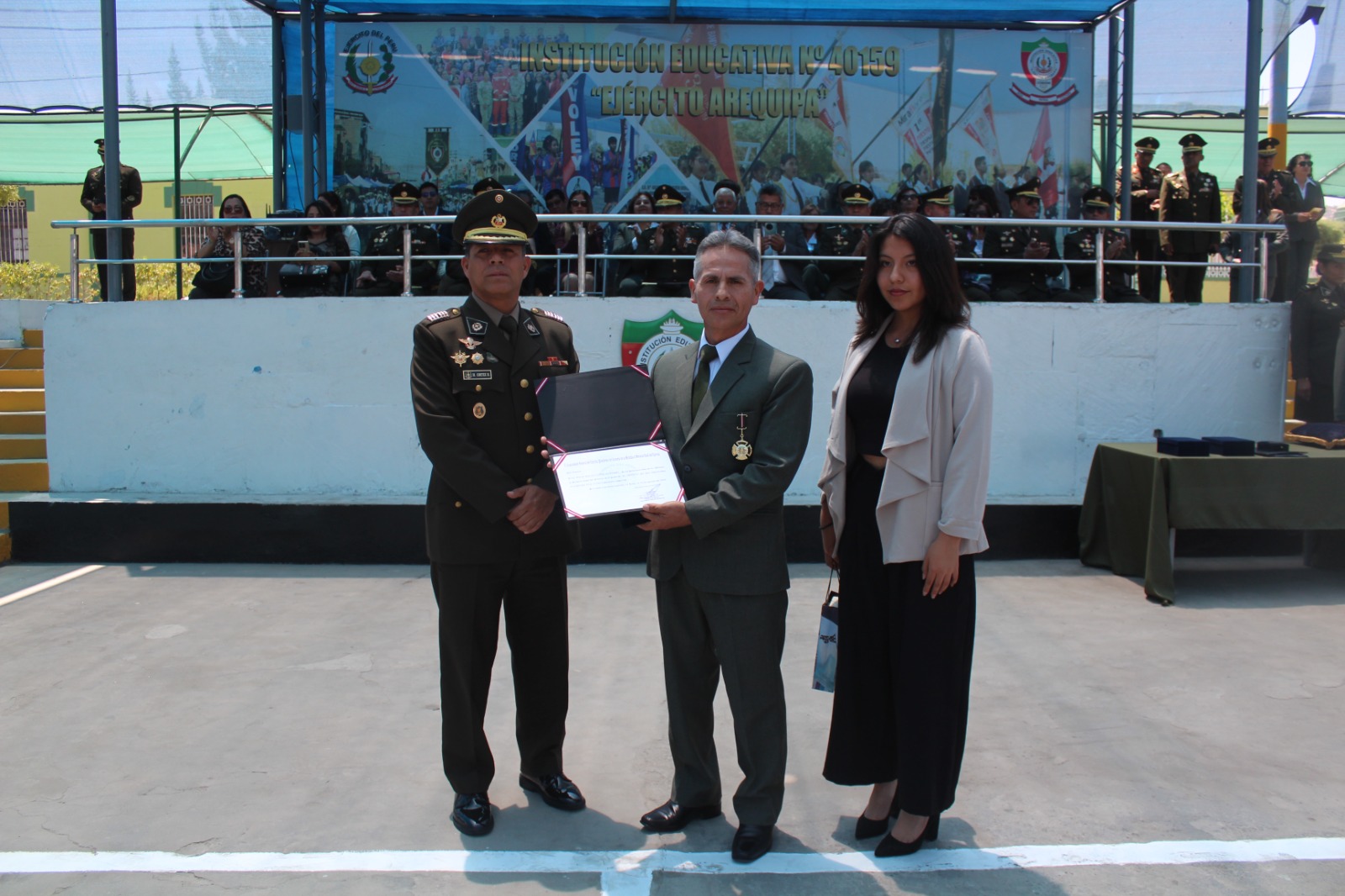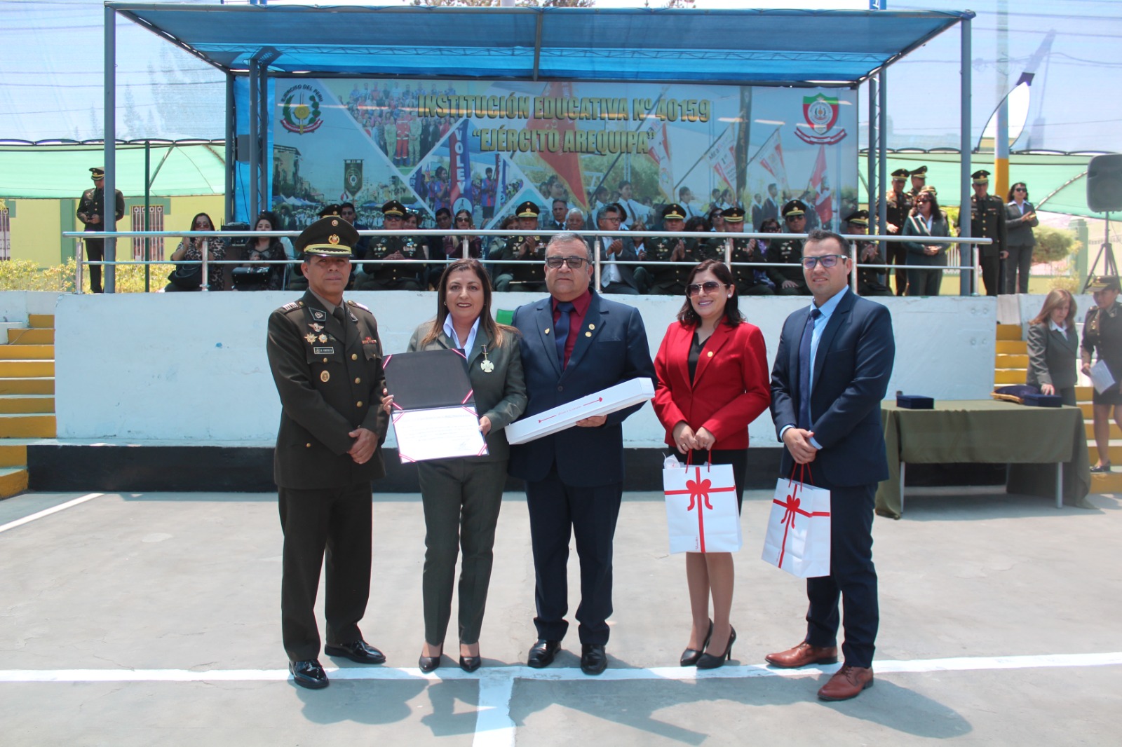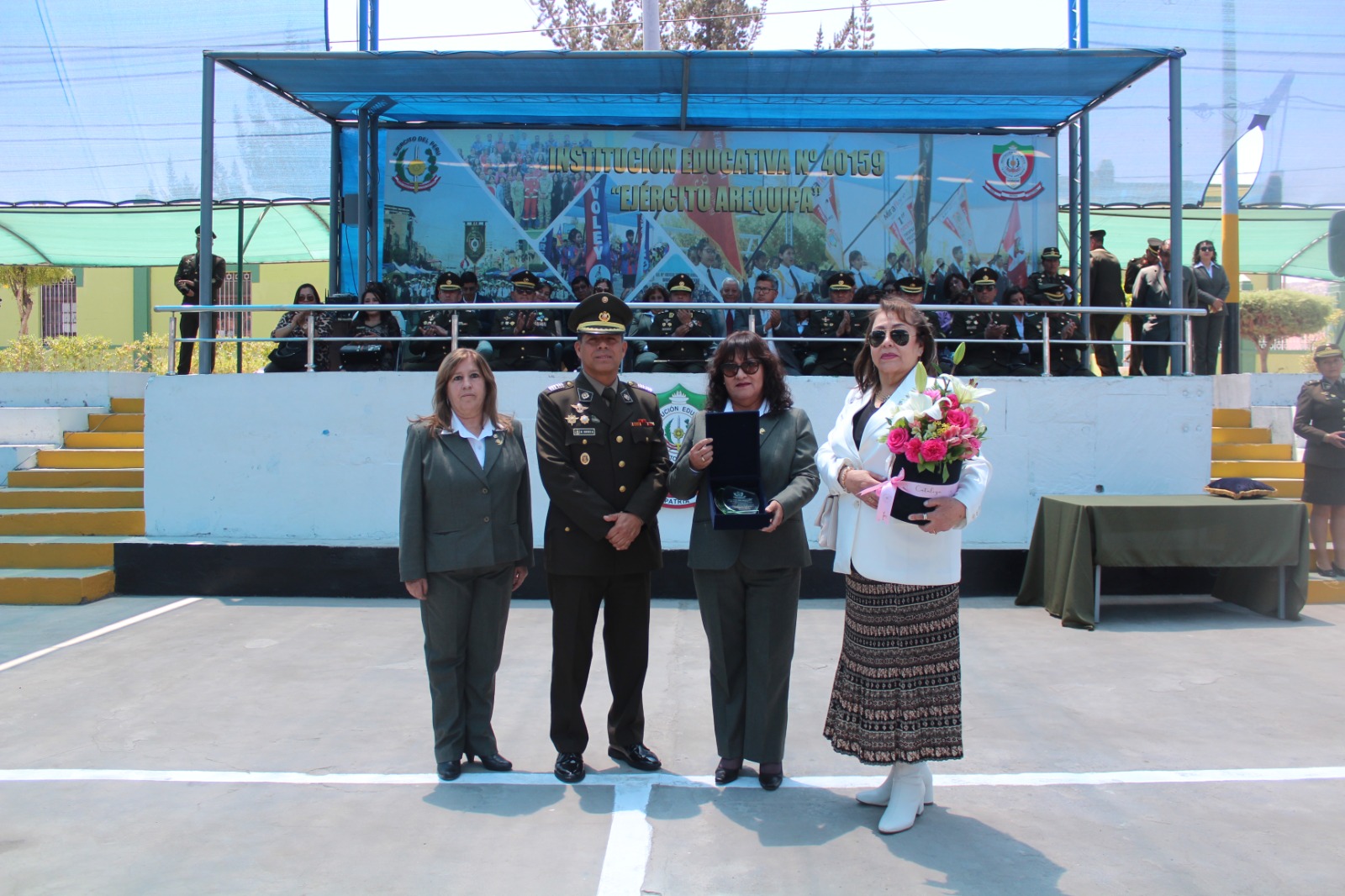 La institución educativa Ejército Arequipa conmemoró, el 21 de septiembre, su 59.° aniversario. Por ese motivo, realizaron un acto protocolar que reunió al inspector de la III División de Ejército, general de brigada EP Emilio Cam Albujar, además de autoridades educativas, docentes, estudiantes y padres de familia.